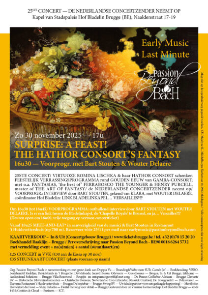 Voorprogramma om 16u30 (tot 16u45): Bart Stouten, gekend van bij Klara, interviewt Wouter Delaere, coördinator Hof Bladelin, over de fascinerende geschiedenis van de Bladelinkapel.